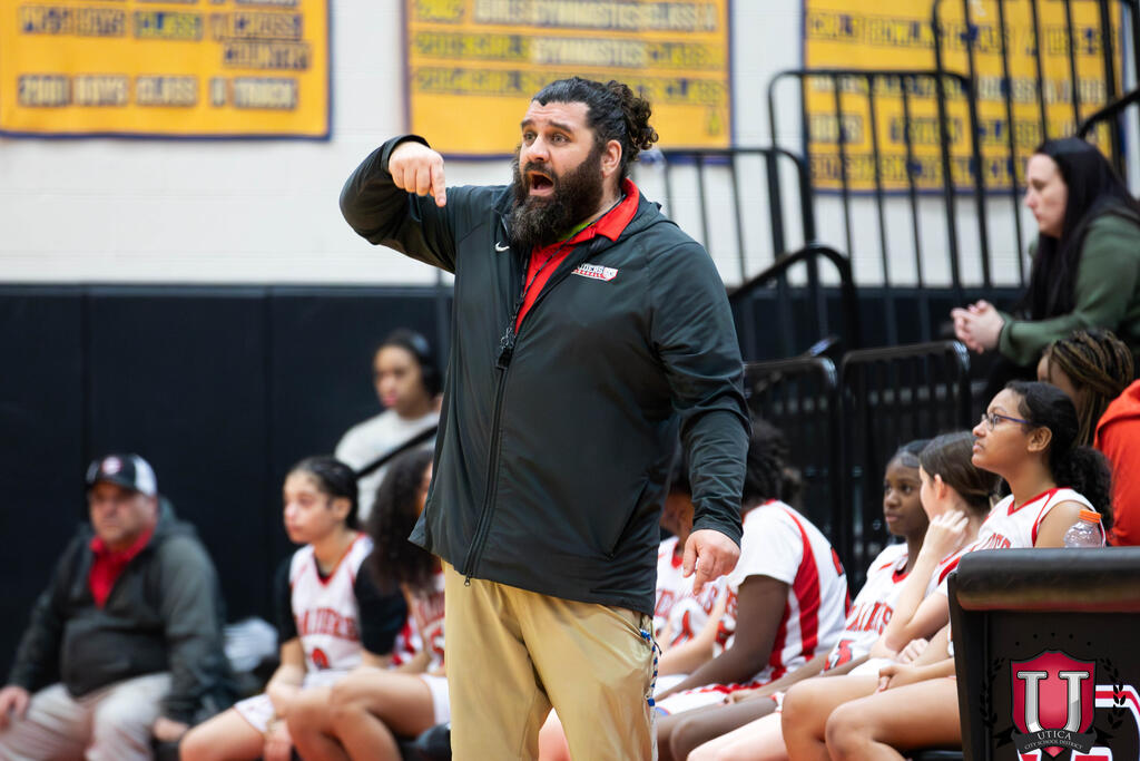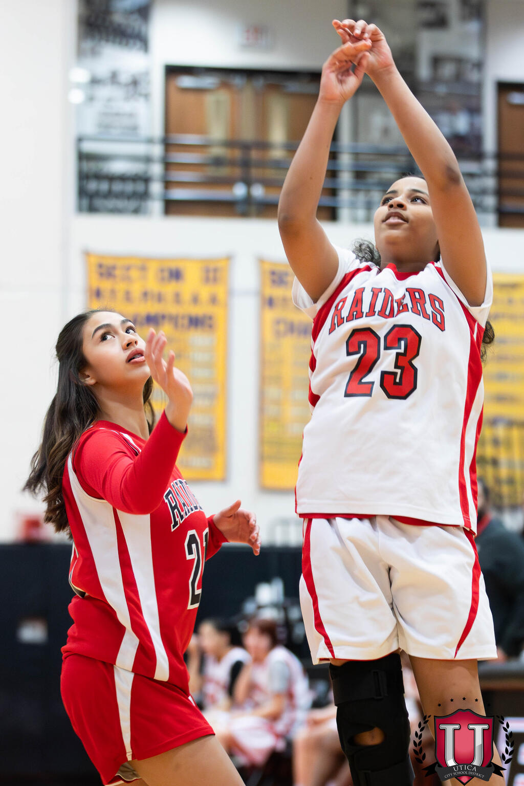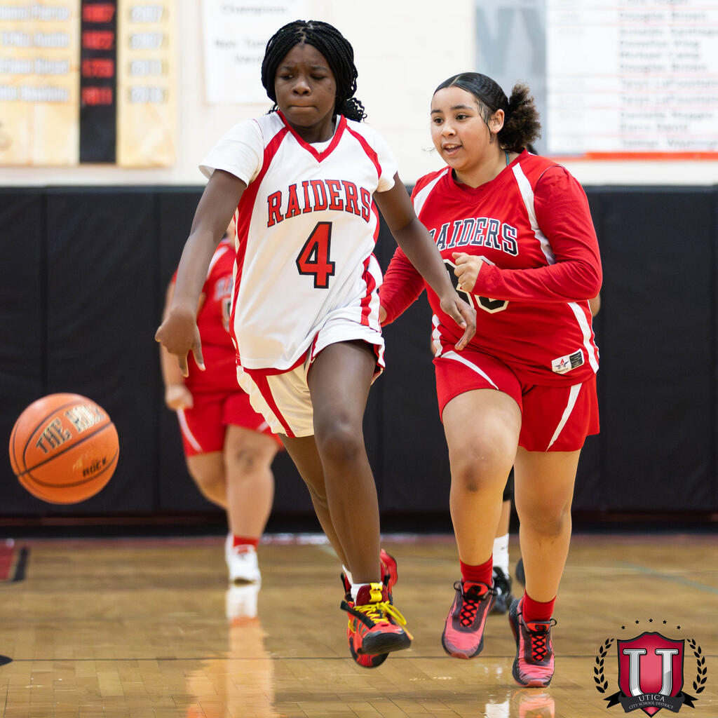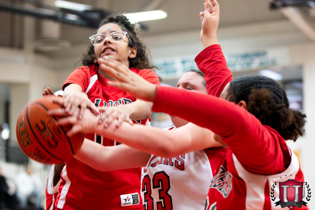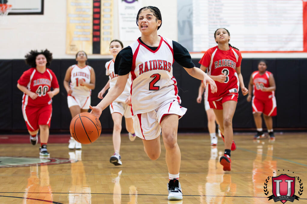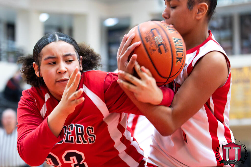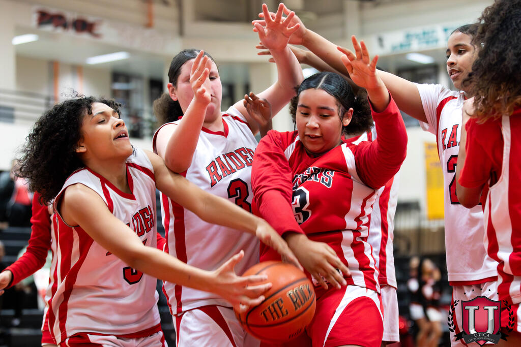 دختران بسکتبال اصلاح ویترین بازی در Proctor دبیرستان