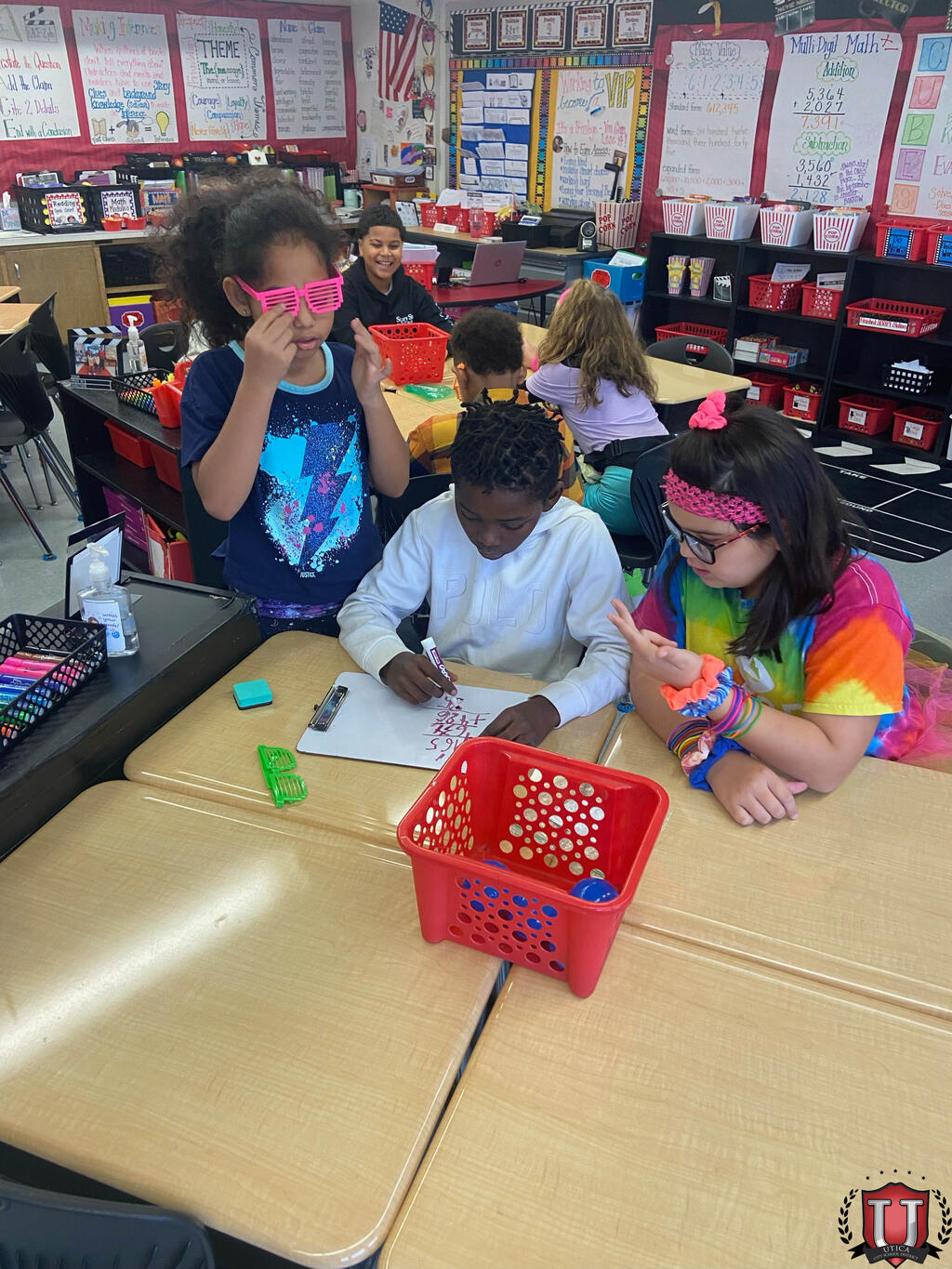 دانش اموزان با همکاری در تیم ها کار می کردند تا پایان ارزیابی ماژول ما را بررسی کنند! انها مشکلات را در تخته های سفید خود حل کردند، اگر مشکل را درست کنند، می توانستند توپ تیم رنگی خود را در یک سبد قرار دهند ..... تبریک به تیم سبز برای پیروزی با 3250 امتیاز!