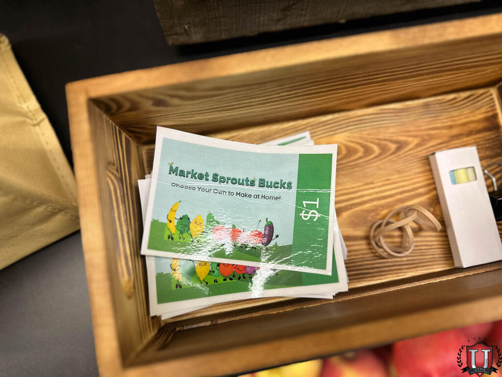 به دانشآموزان 5 دلار به عنوان "Market Sprouts Bucks" داده شد و این آزادی را داشتند که برای انتخاب سبزیجات خود از بازار کشاورزان خود در مدرسه خرید کنند. این برنامه فرصتی برای دانش آموزان فراهم می کند تا میوه ها و سبزیجات جدید را امتحان کنند، آنها را در معرض محصولات محلی قرار دهند و به آنها آموزش می دهد که چگونه می توان آنها را در خانه تهیه کرد.