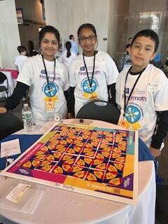 At the championship, the students competed alongside some of the best young math minds from across New York State in a fast-paced, team-based setting. Before the competition began, the trio warmed up together on the museum floor, focused and excited. A highlight of the day came when Habibah and Madina spotted Robert Sun, the creator of the 24 Game and CEO of First in Math. They introduced themselves, and Mr. Sun was thrilled to meet them in person.
