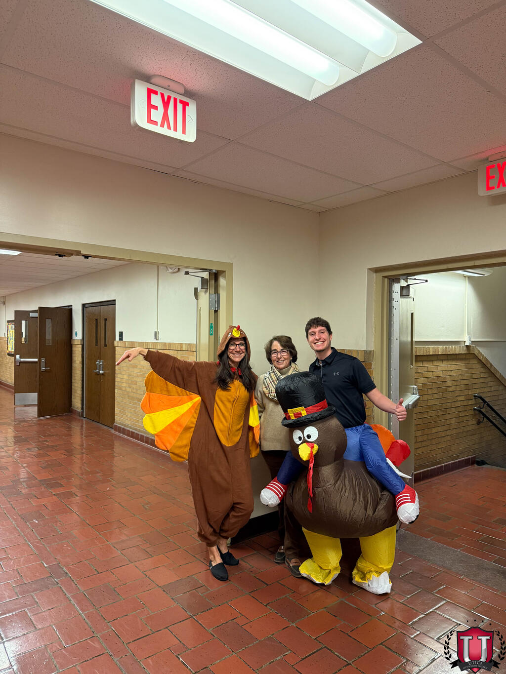 دانش آموزان ابتدایی هیوز به معلم مورد علاقه خود رای دادند تا یک روز قبل از تعطیلات ما مانند بوقلمون لباس بپوشد. دو معلم کلاس پنجم رتبه اول و دوم را کسب کردند! ما واقعاً فداکارترین معلمان را داریم، زیرا هر دو تصمیم گرفتند به دلیل رای بسیار زیاد هر دوی آنها لباس بپوشند!