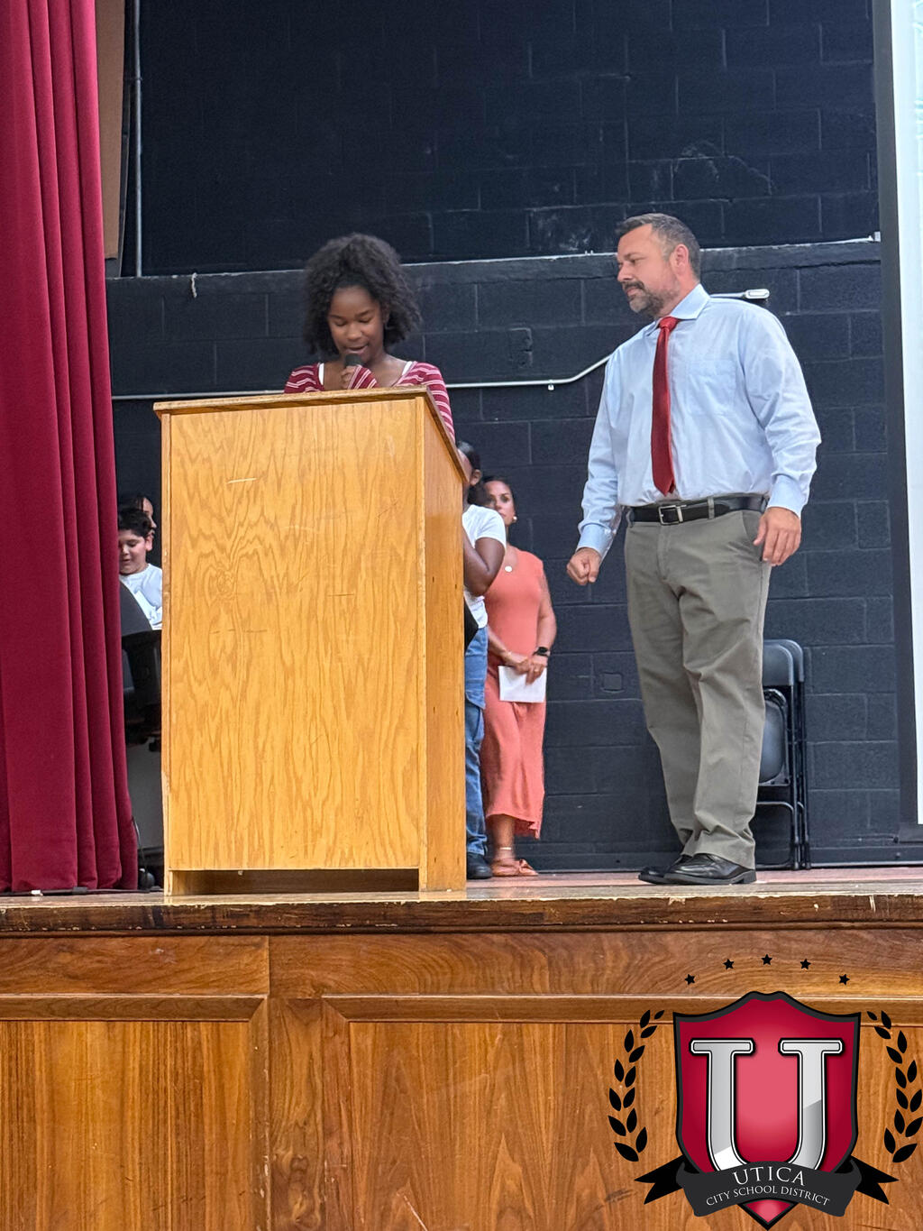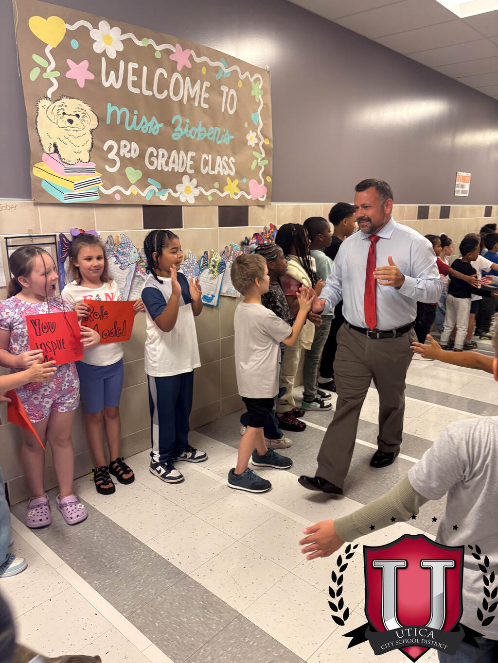 6th Grade students walked through the halls and were cheered on by former teachers and fellow students. They ended the march in the auditorium with an assembly to talk about the things they would like to accomplish this school year and what it means to be a leader in the building for other students.